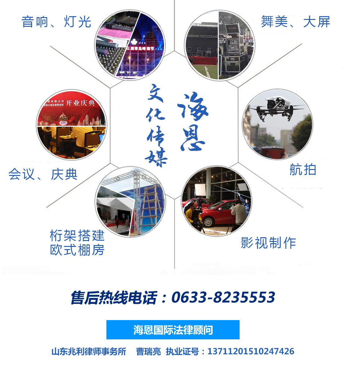 日照海恩國際展覽股份有限公司主要經(jīng)營:為文化藝術(shù)交流提供服務(wù),攝影攝像服務(wù),廣告圖文設(shè)計(jì),舞臺(tái)設(shè)計(jì),文化藝術(shù)交流策劃,舞臺(tái)藝術(shù)造型策劃,企業(yè)營銷策劃,商務(wù)信息咨詢,會(huì)議服務(wù),展覽展示服務(wù),禮儀慶典服務(wù),廣告設(shè)計(jì)制作等產(chǎn)品。公司尊崇“踏實(shí)、拼搏、責(zé)任”的企業(yè)精神,并以誠信、共贏、經(jīng)營理念,創(chuàng)造良好的企業(yè)環(huán)境,以全新的管理模式,完善的技術(shù),周到的服務(wù),我們始終堅(jiān)...